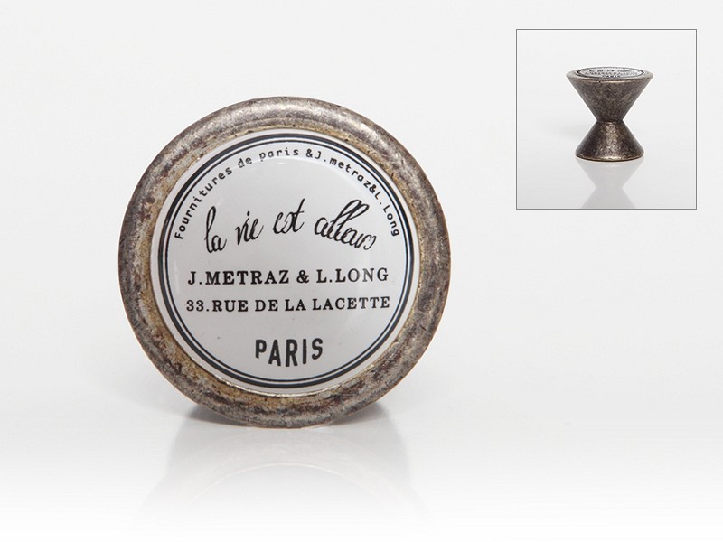 Roline 522 Λαβή Eπίπλου από Ζάμακ & Πορσελάνη Old Silver-Stone με Κέντρα 128mm