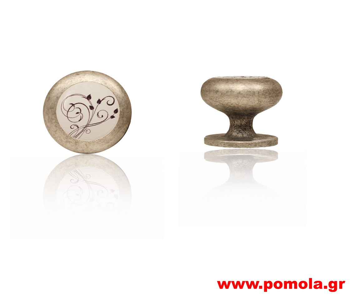 Roline 522 Λαβή Eπίπλου από Ζάμακ & Πορσελάνη Old Silver-Stone με Κέντρα 128mm