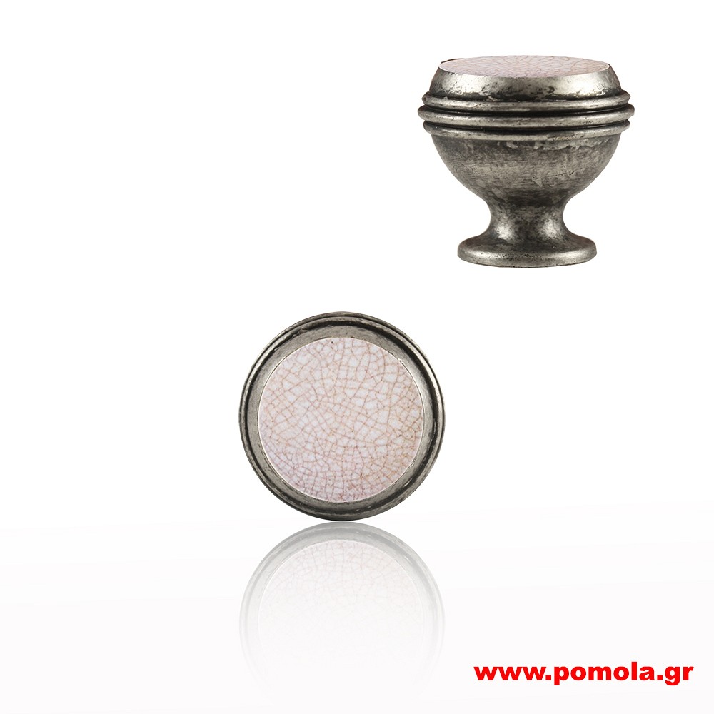 Roline 522 Λαβή Eπίπλου από Ζάμακ & Πορσελάνη Old Silver-Stone με Κέντρα 128mm