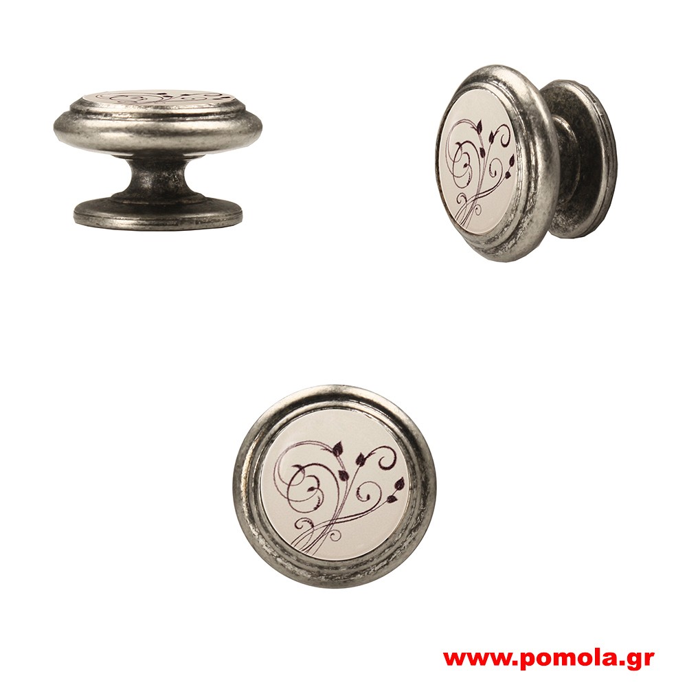 Roline 557 Λαβή Eπίπλου από Ζάμακ & Πορσελάνη Old Silver-Μπεζ με Κέντρα 128mm