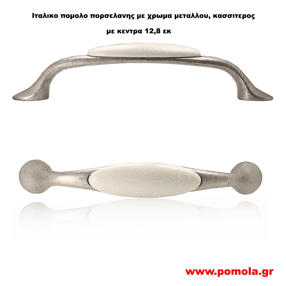 Roline 522 Λαβή Eπίπλου από Ζάμακ & Πορσελάνη Old Silver-Stone με Κέντρα 128mm