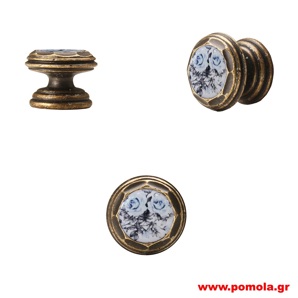 Roline 520 Λαβή Eπίπλου από Ζάμακ & Πορσελάνη Αντικέ - Μπλε με Κέντρα 96mm