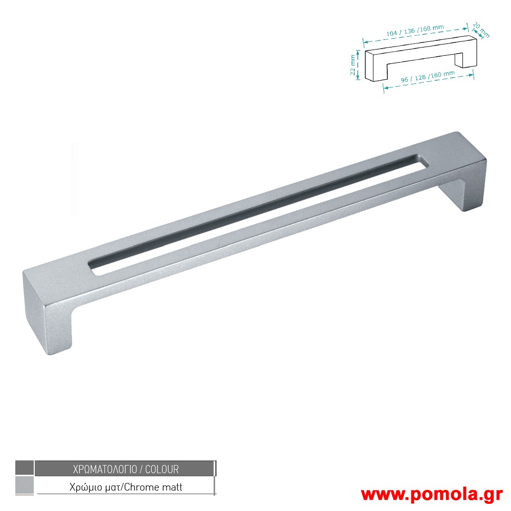 180 Λαβη κουζινας ντουλαπας ή επιπλου χρωμιο ματ zbls
