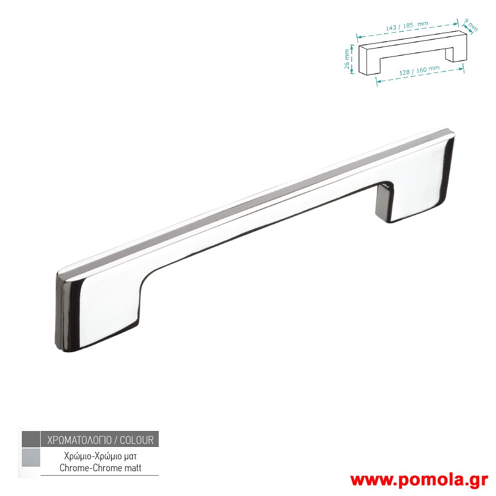 148 Λαβη κουζινας ντουλαπας ή επιπλου χρωμιο-χρωμιο ματ zbls