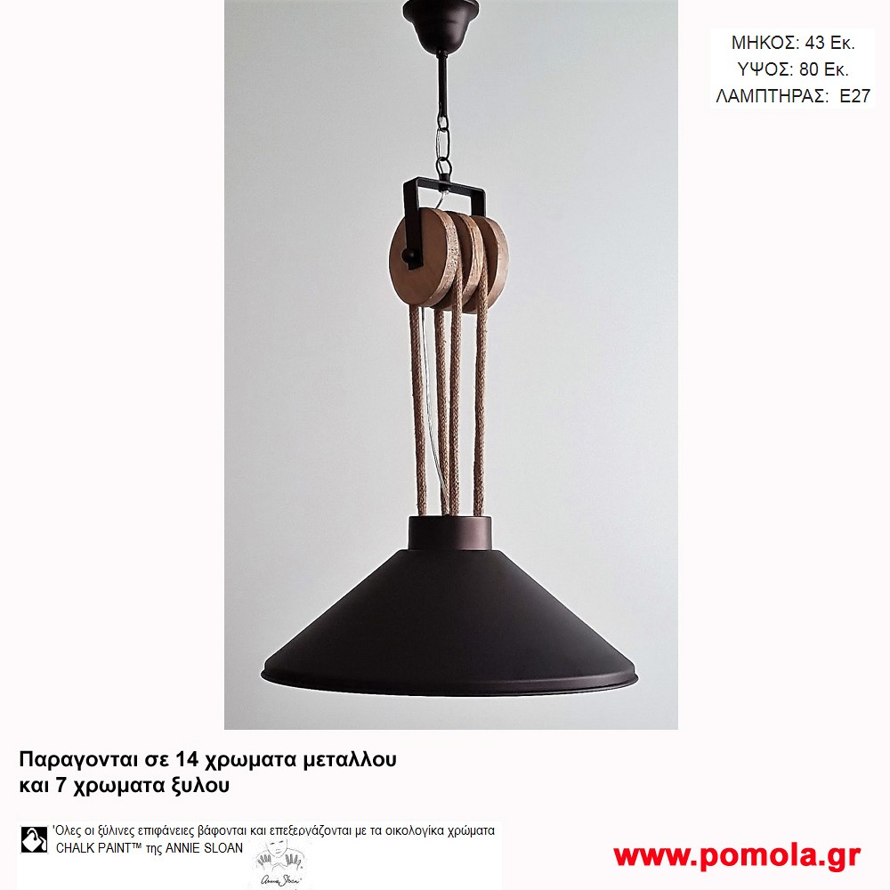 048 Φωτιστικα με Σχοινι Ξυλο Μεταλλο Μονοφωτα