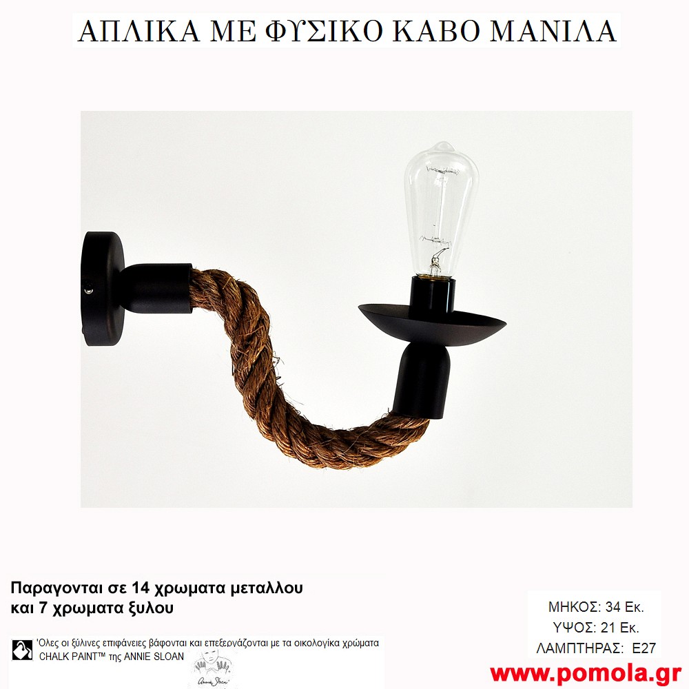 220 Φωτιστικα με Σχοινι Ξυλο Μεταλλο Απλικα