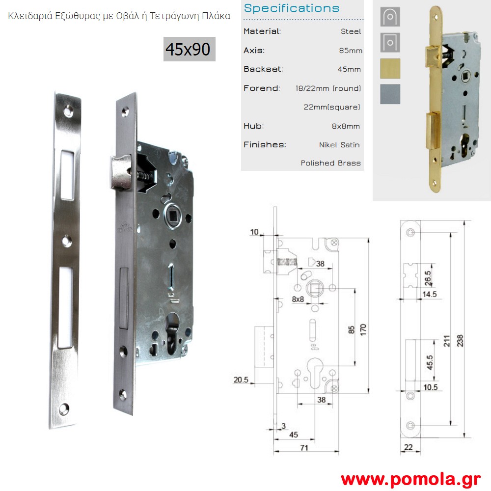 084 Κλειδαρια Ασφαλειας 45χ85 μονοκομματη γλωσσα μπιλιας gv