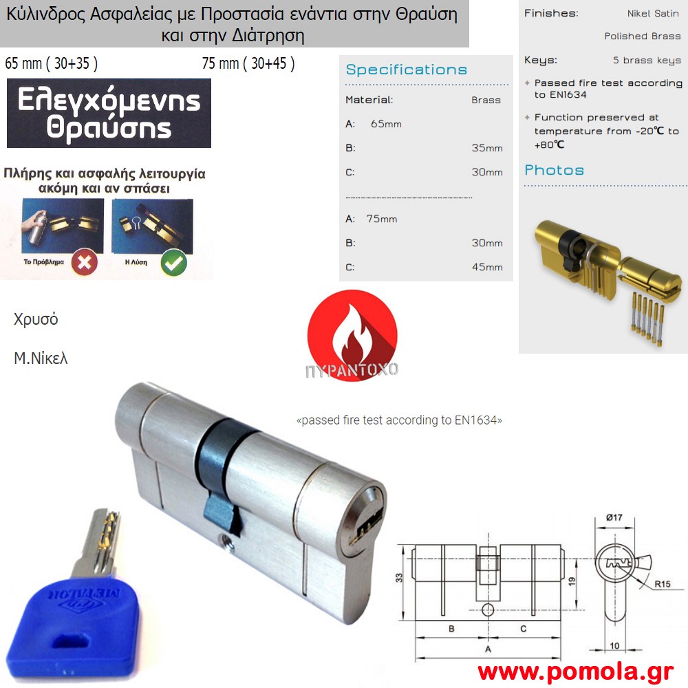 077 Κλειδαρια Ασφαλειας 45χ85 με πυρους οβαλ gv
