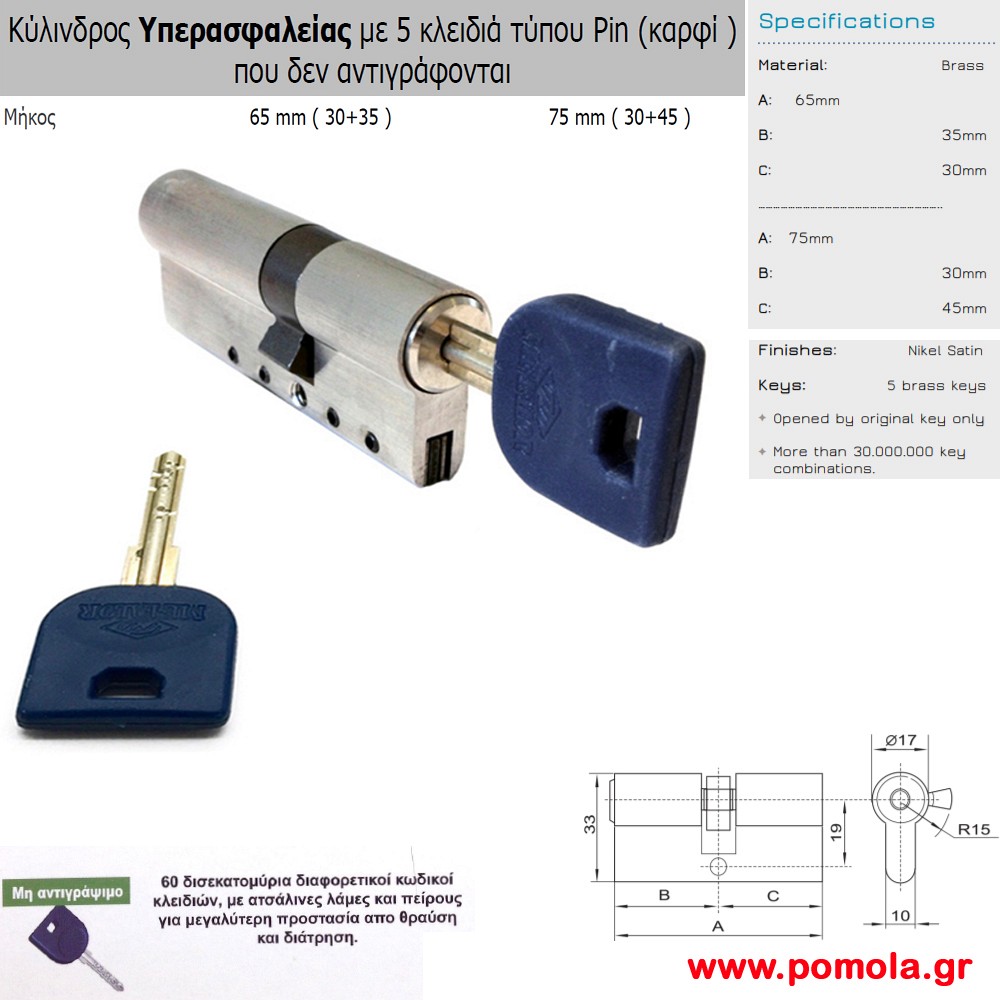 063 Κλειδαρια ασφαλειας για τζαμοπορτες με κυλινδρο gv