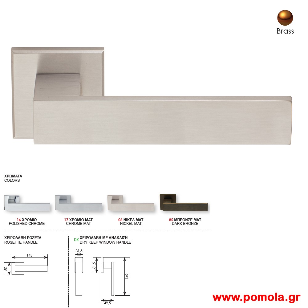 Πόμολο πόρτας στριφτό γυριστό ΡΟΖΕΤΑ ΚΛΕΙΔΙ ΜΑΤ ΟΡΕΙΧ