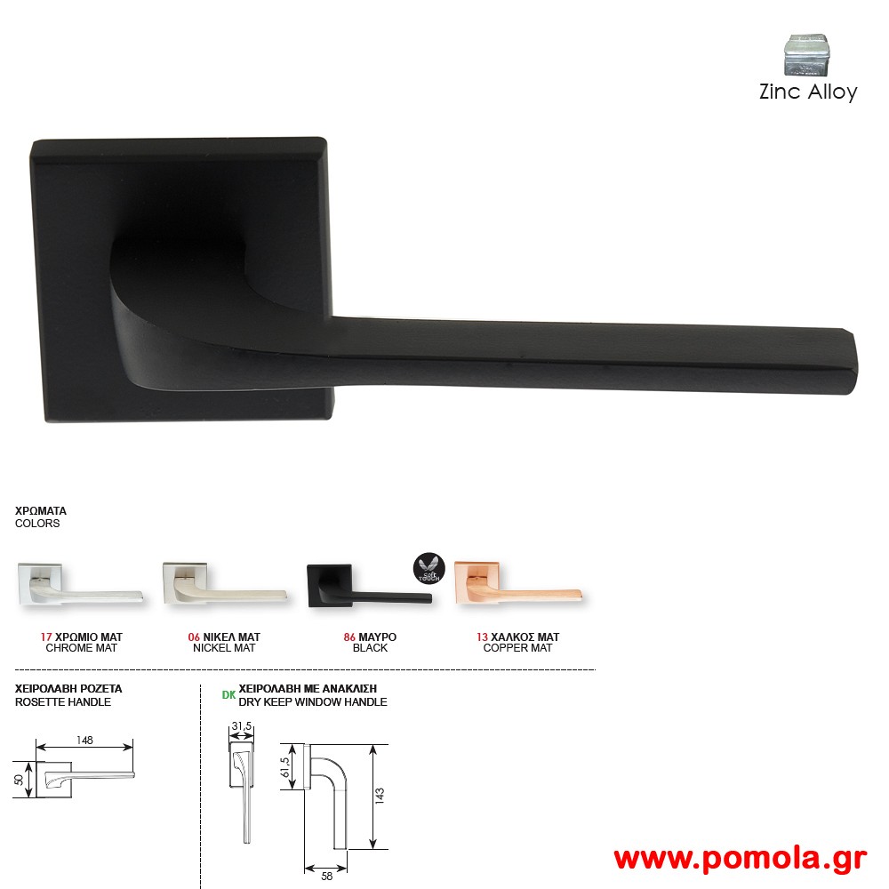 Πόμολο πόρτας στριφτό γυριστό ΡΟΖΕΤΑ ΧΩΡΙΣ ΕΠΙΣΤ Ματ Μαύρο