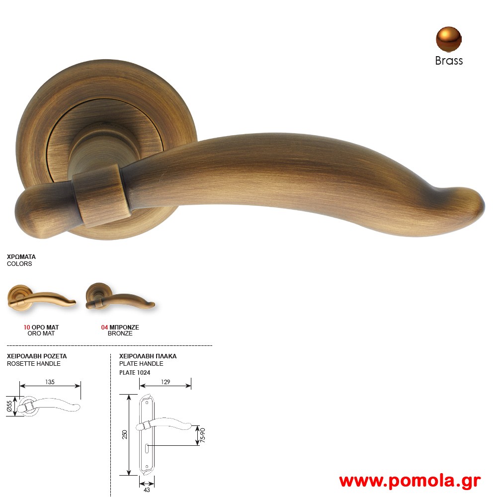 Πόμολο πόρτας στριφτό γυριστό ΡΟΖΕΤΑ ΦΙΞ ΔΕΞΙΑ ΜΑΤ ΜΠΡΟΝΖΕ