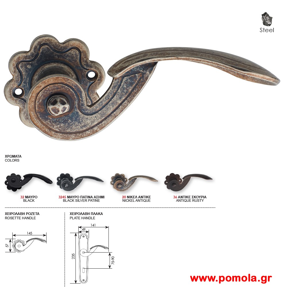 Ζευγάρι Χειρολαβών Πόρτας σε Ροζέτα με Επιστόμια Κλειδιού Σα