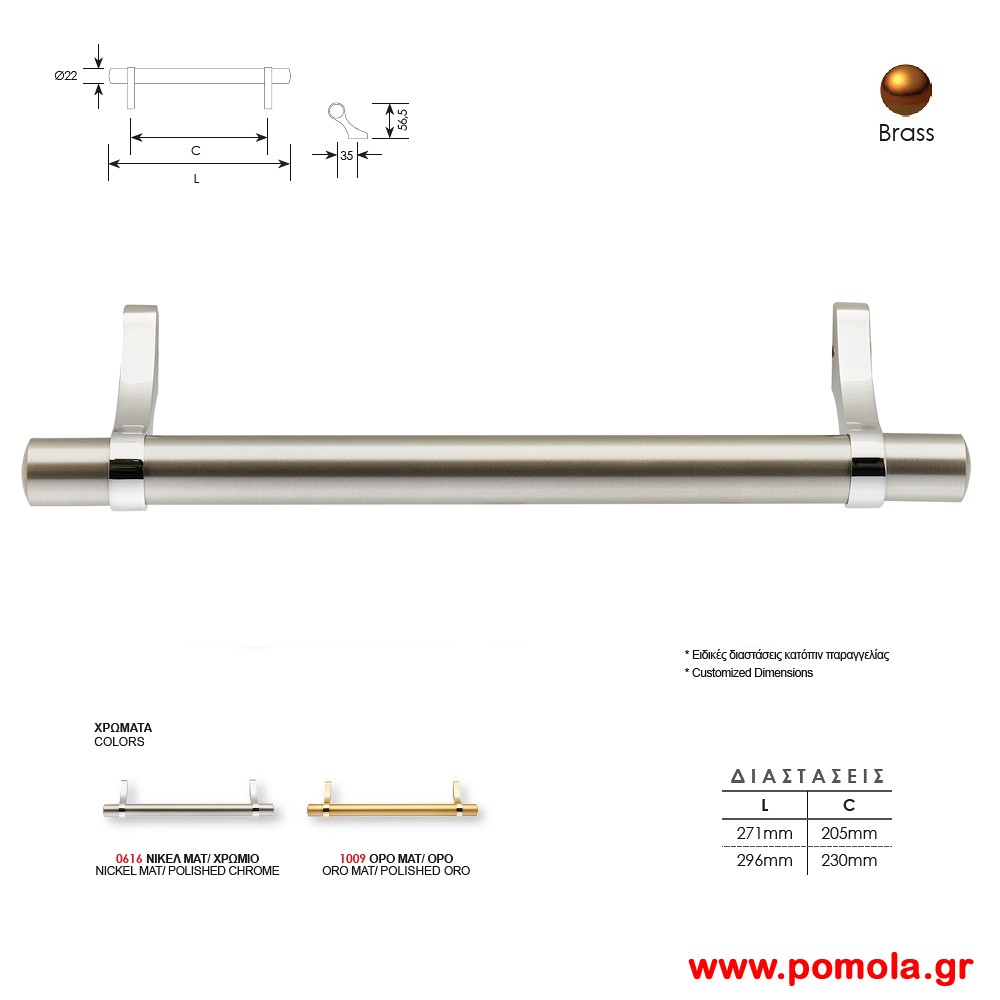 1043 Λαβη εξωπορτας ορειχαλκινη ορο ματ ορο msv