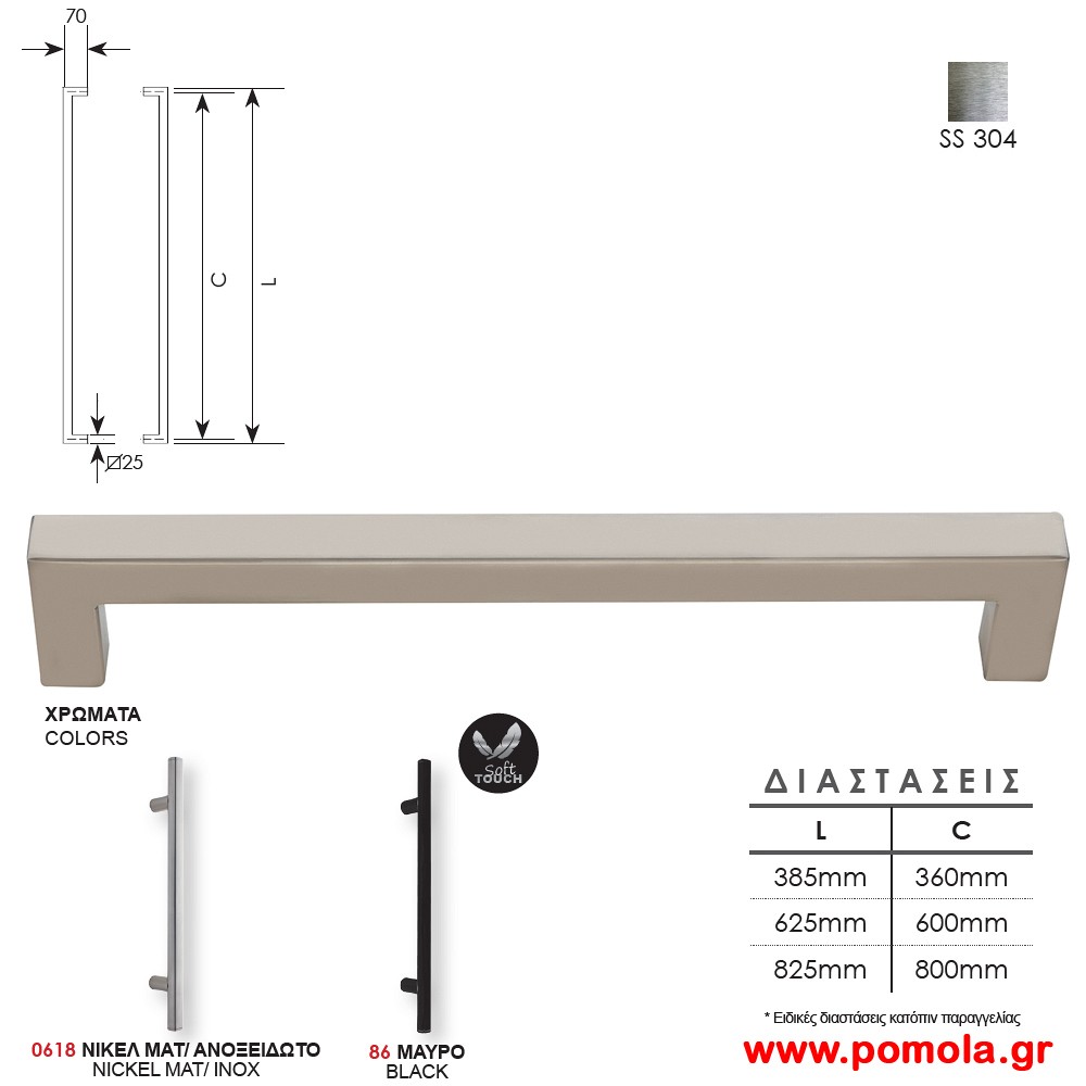 1080 Λαβη εξωπορτας ανοξειδωτη τετραγωνη knmds