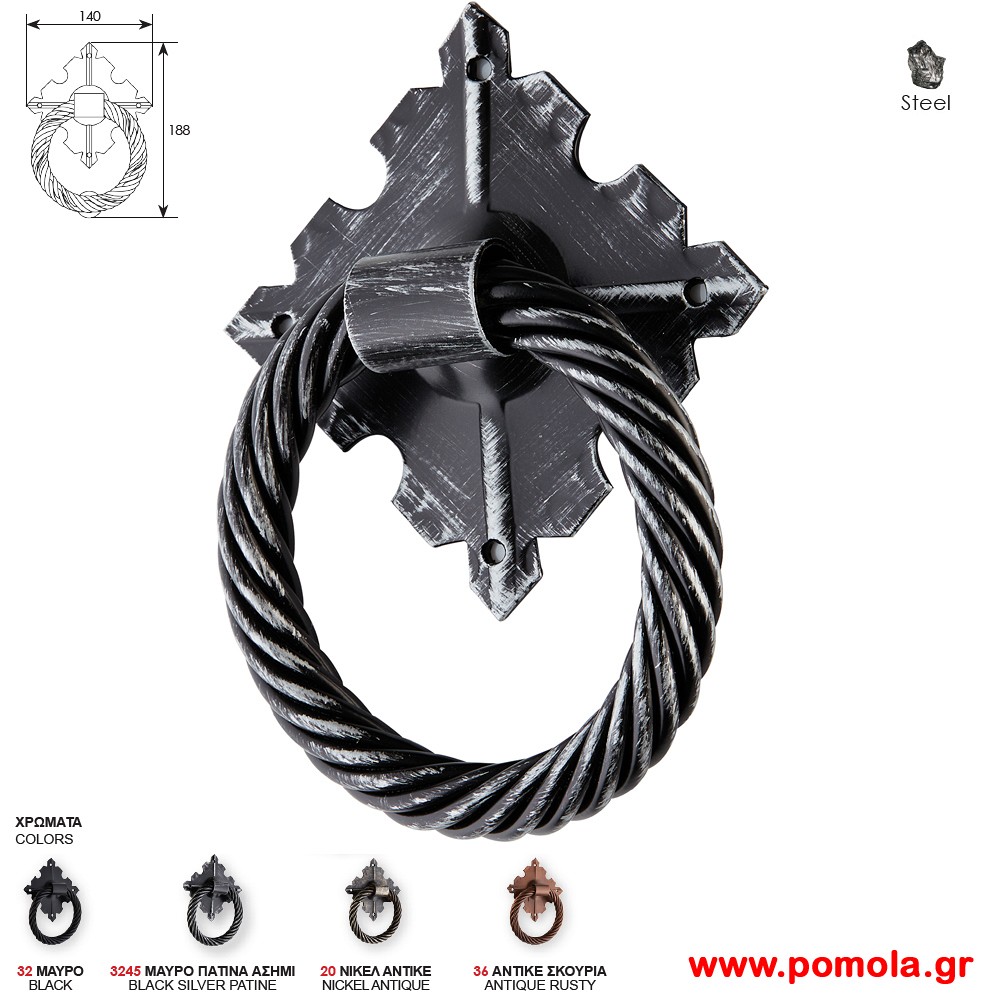 060 Ροπτρο πορτας Μαυρο πατινα ασημι