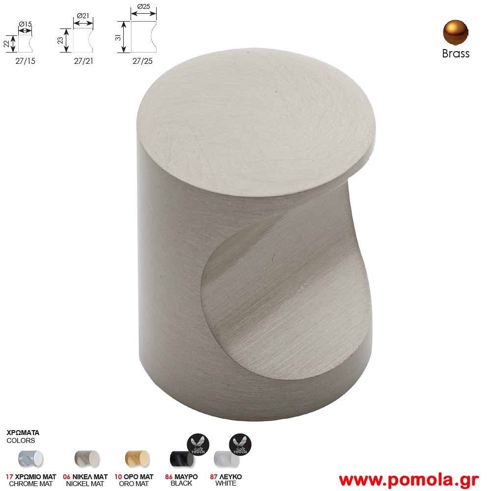Πόμολο κουζίνας ντουλάπας ή επίπλου νίκελ ματ