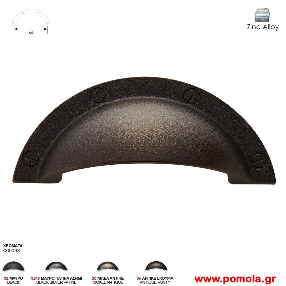 571 Λαβιτσα χουφτα Μαυρο πατινα ασημι