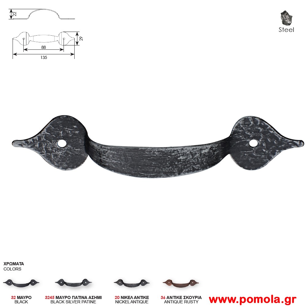 088 Λαβη κουζινας ντουλαπας ή επιπλου κασσιτερος zbls