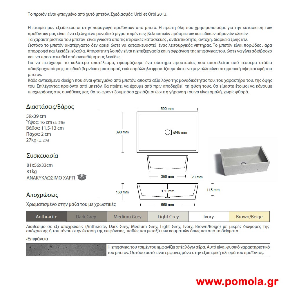 050 Νιπτηρες απο Μπετον Τσιμεντο