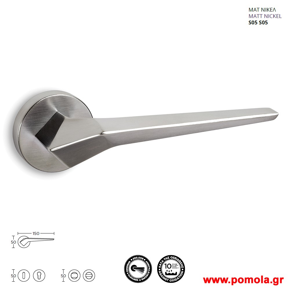 Πόμολο πόρτας στριφτό γυριστό ΣΕ ΡΟΖΕΤΑ ΜΕ ΕΠΙΣΤΟΜΙΟ ΚΥΛΙΝΔΡΟΥ ΔΕΞΙΑ Ματ Νίκελ