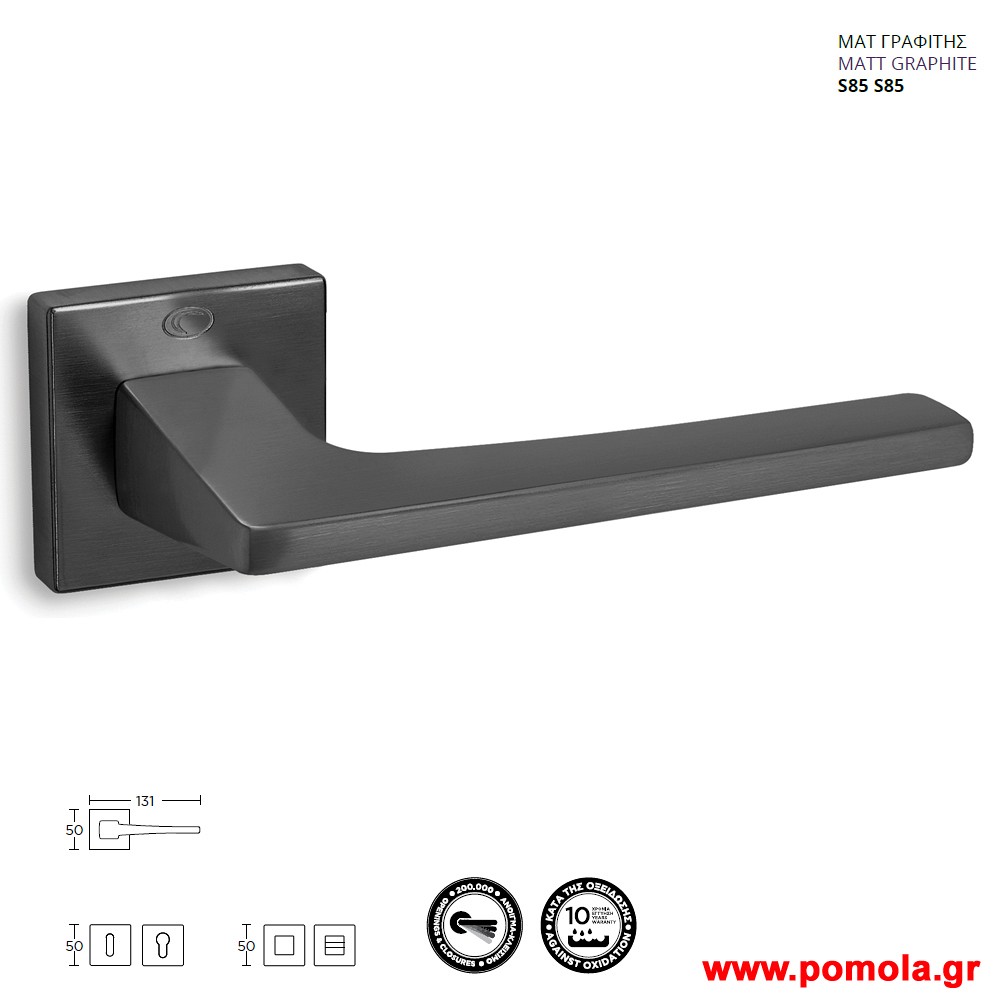150 Πόμολο εξωπόρτας πλαστικό με μεταλλικη ροζέτα, ανθρακι zbls