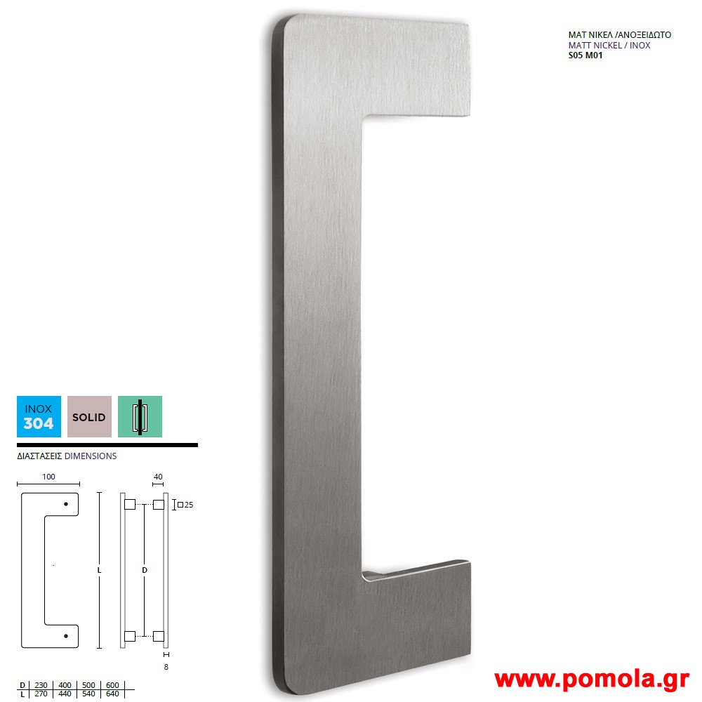 548 Λαβη Εξωπορτας νικελ ματ ανοξειδωτο