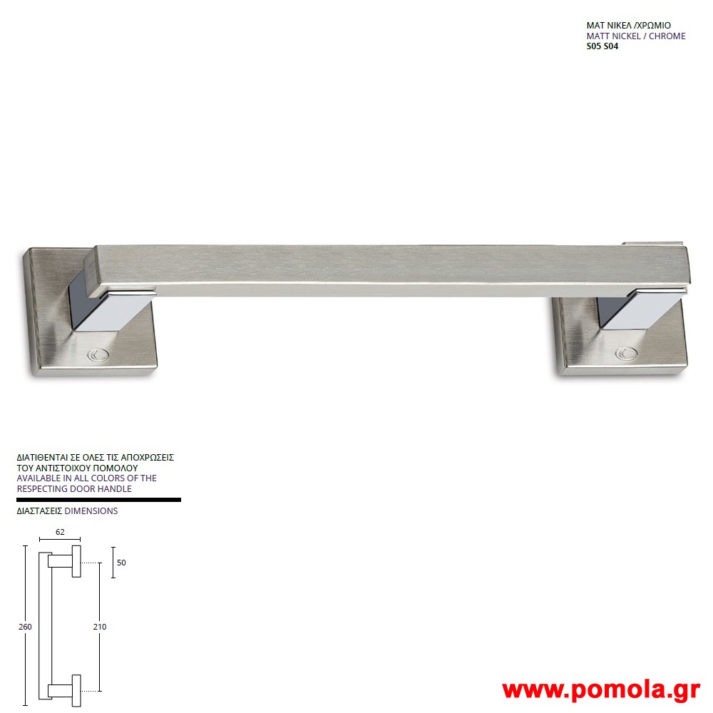 1175 Λαβή εξώπορτας νίκελ ματ χρωμιο zbls