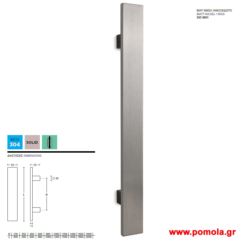 555 Λαβη Εξωπορτας νικελ ματ ανοξειδωτο