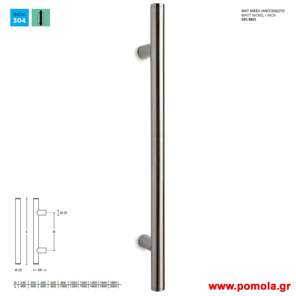 435 Λαβη Εξωπορτας Νικελ ματ χρωμιο