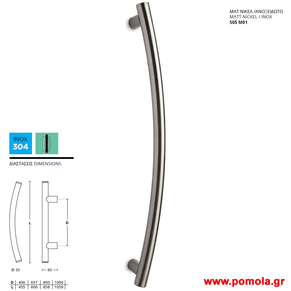 545 Λαβη Εξωπορτας νικελ ματ ανοξειδωτο
