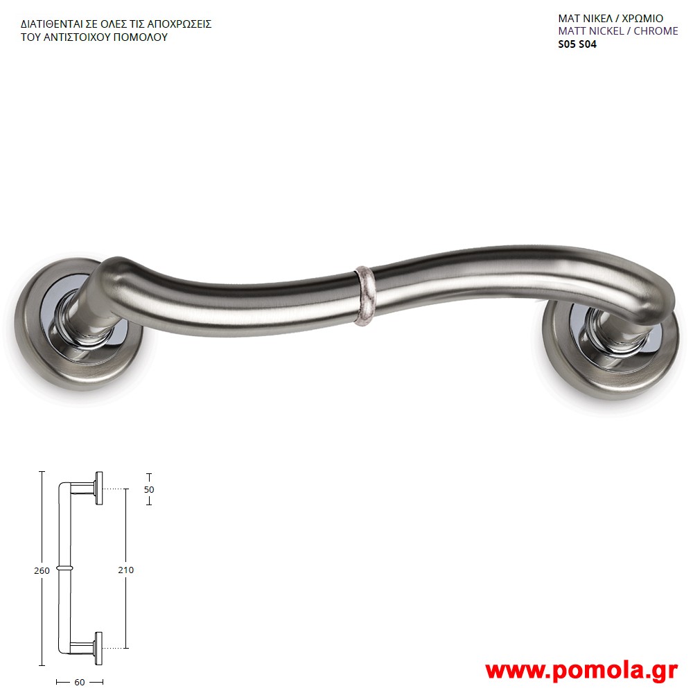 954 Λαβη εξωπορτας ορειχαλκινη νικελ ματ χρωμιο msv