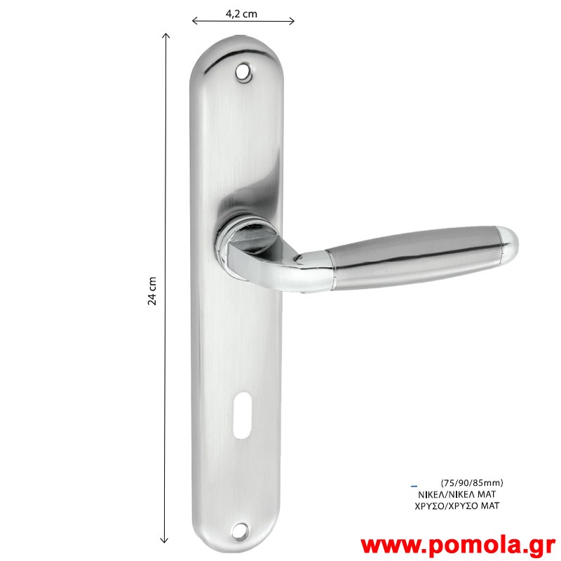 Πόμολο πόρτας στριφτό γυριστό ΡΟΖΕΤΑ ΚΛΕΙΔΙ Ματ Νίκελ Χρώμιο