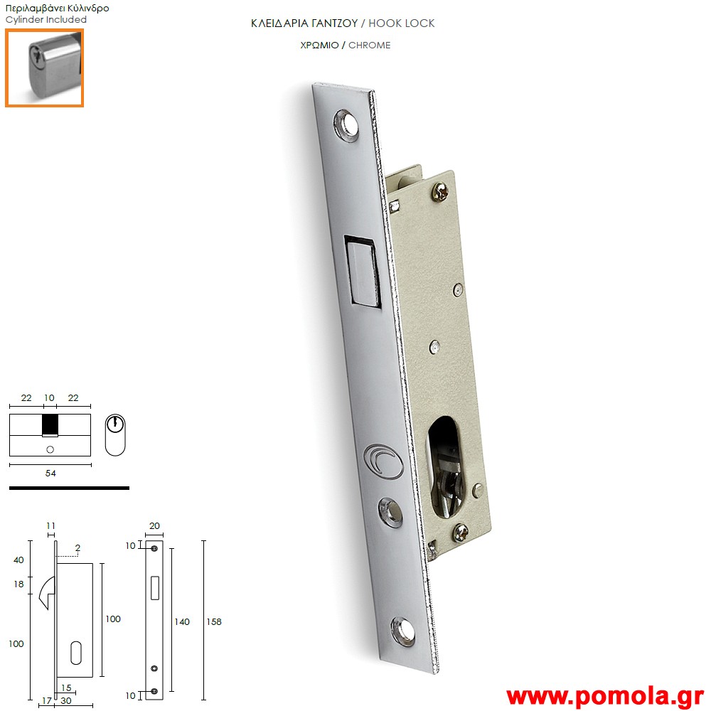 062 Κλειδαρια ασφαλειας για τζαμοπορτεw με κυλινδρο και defender gv