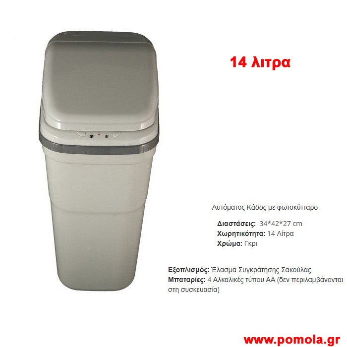 064 Αυτόματος κάδος γκρί με φωτοκύτταρο 8 λίτρων μαζί με σκουπάκι