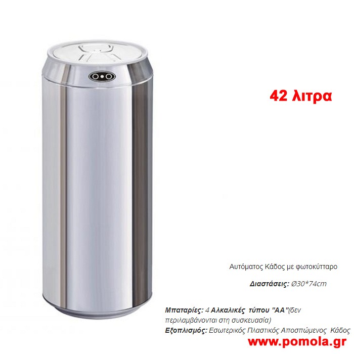 021 Αυτοματος μεταλλικος καδος με φωτοκυτταρο 42 λιτρων
