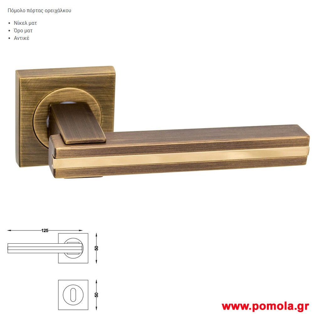 Roline Κ370 Πόμολο Πόρτας για PVC με Ροζέτα από Ορείχαλκο Αντικέ 32x62x114mm