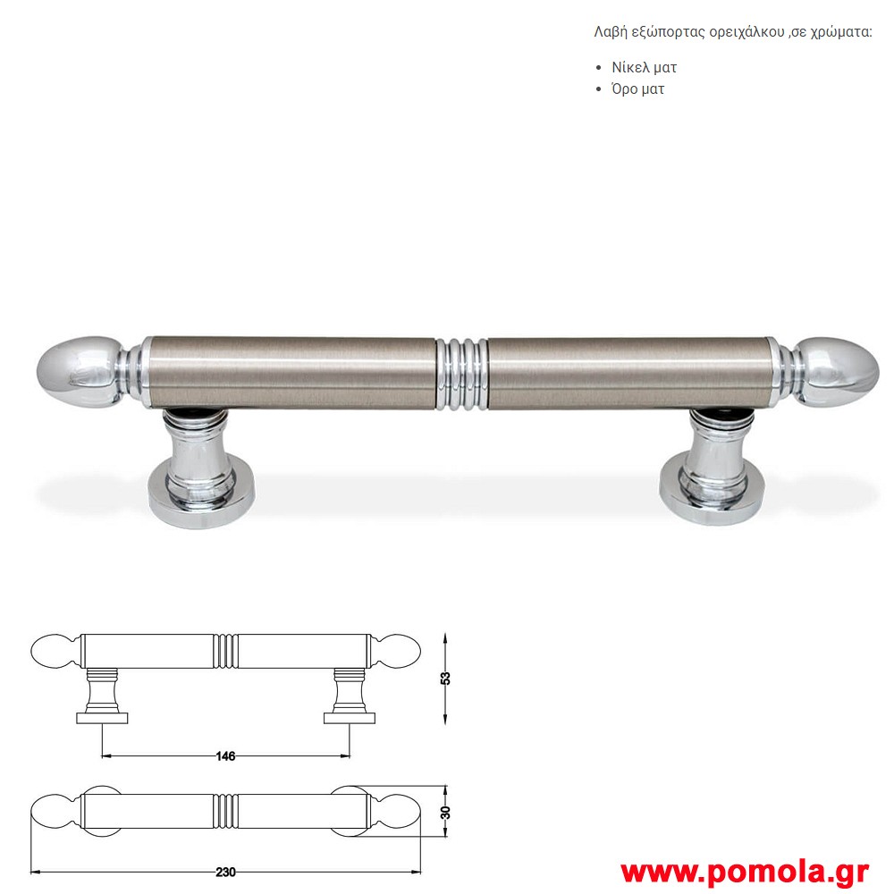 813 Λαβη εξωπορτας φ 30 νικελ ματ msv