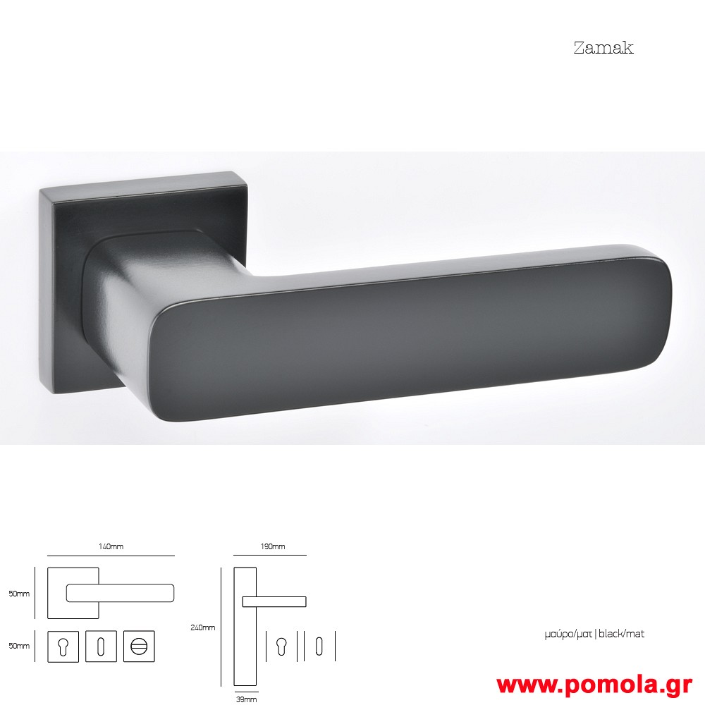 Πόμολο πόρτας στριφτό γυριστό ΣΕ ΡΟΖΕΤΑ ΜΕ ΕΠΙΣΤΟΜΙΟ ΚΥΛΙΝΔΡΟΥ Ματ Μαύρο