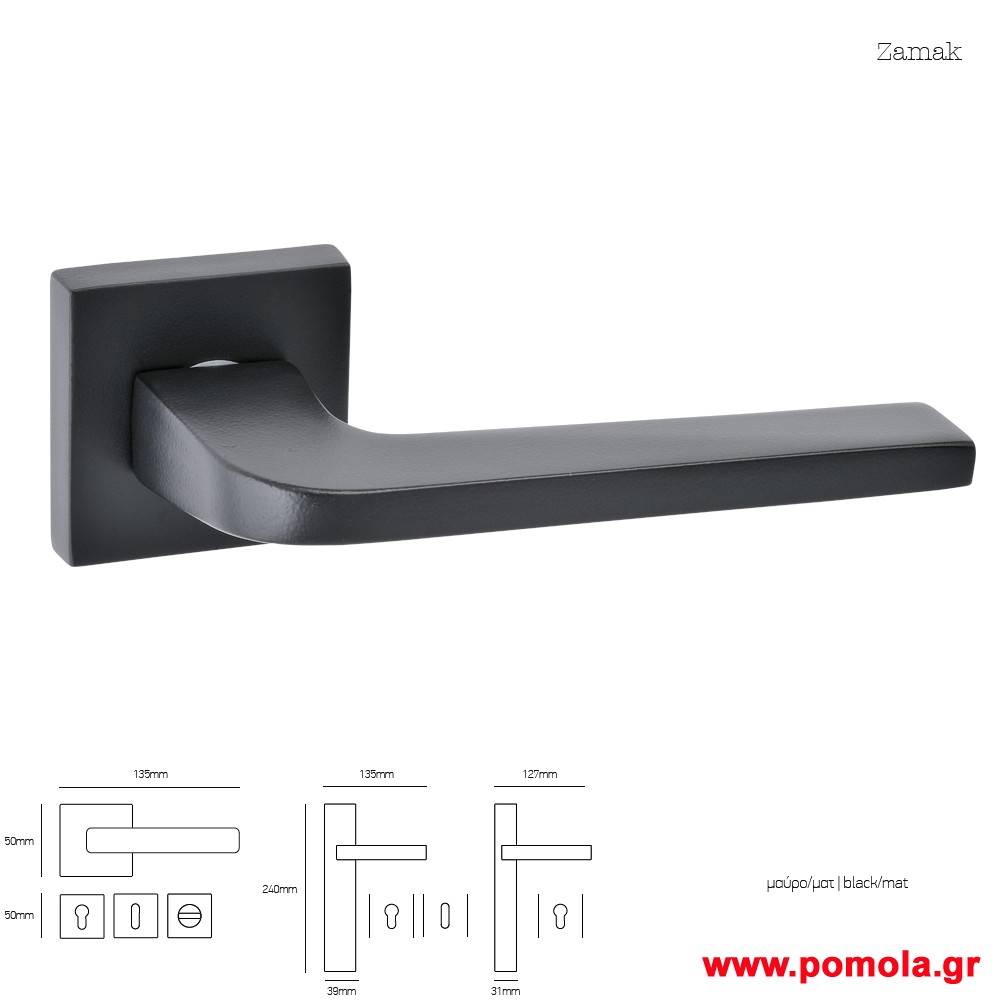 165 Πόμολο πόρτας πλαστικό με μεταλλικη ροζέτα wc λουτρού, ανθρακι zbls
