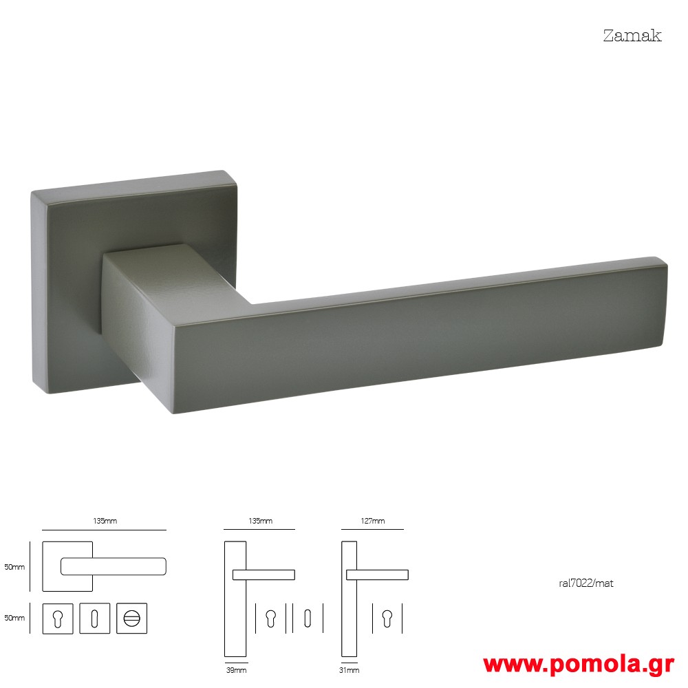 154 Πόμολο εξωπόρτας πλαστικό με μεταλλικη ροζέτα, ανθρακι zbls
