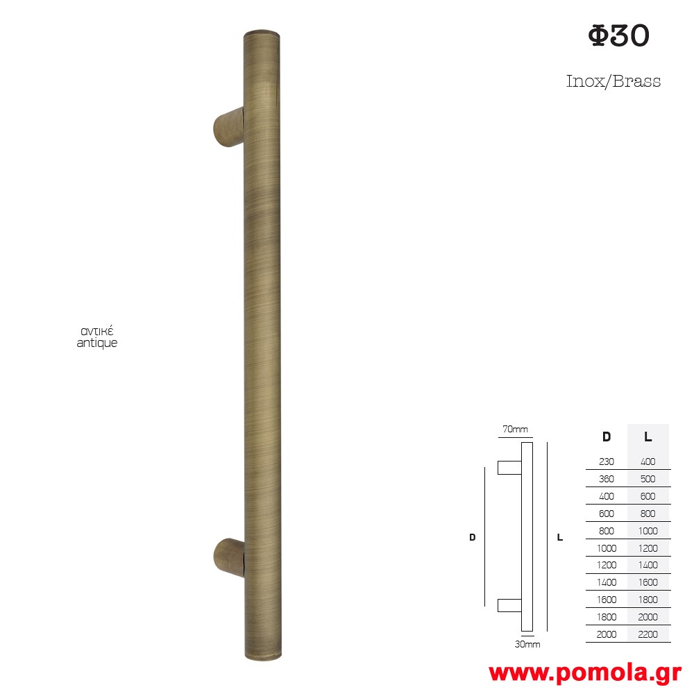 811 Λαβη εξωπορτας φ 30 αντικε μπρονζε msv