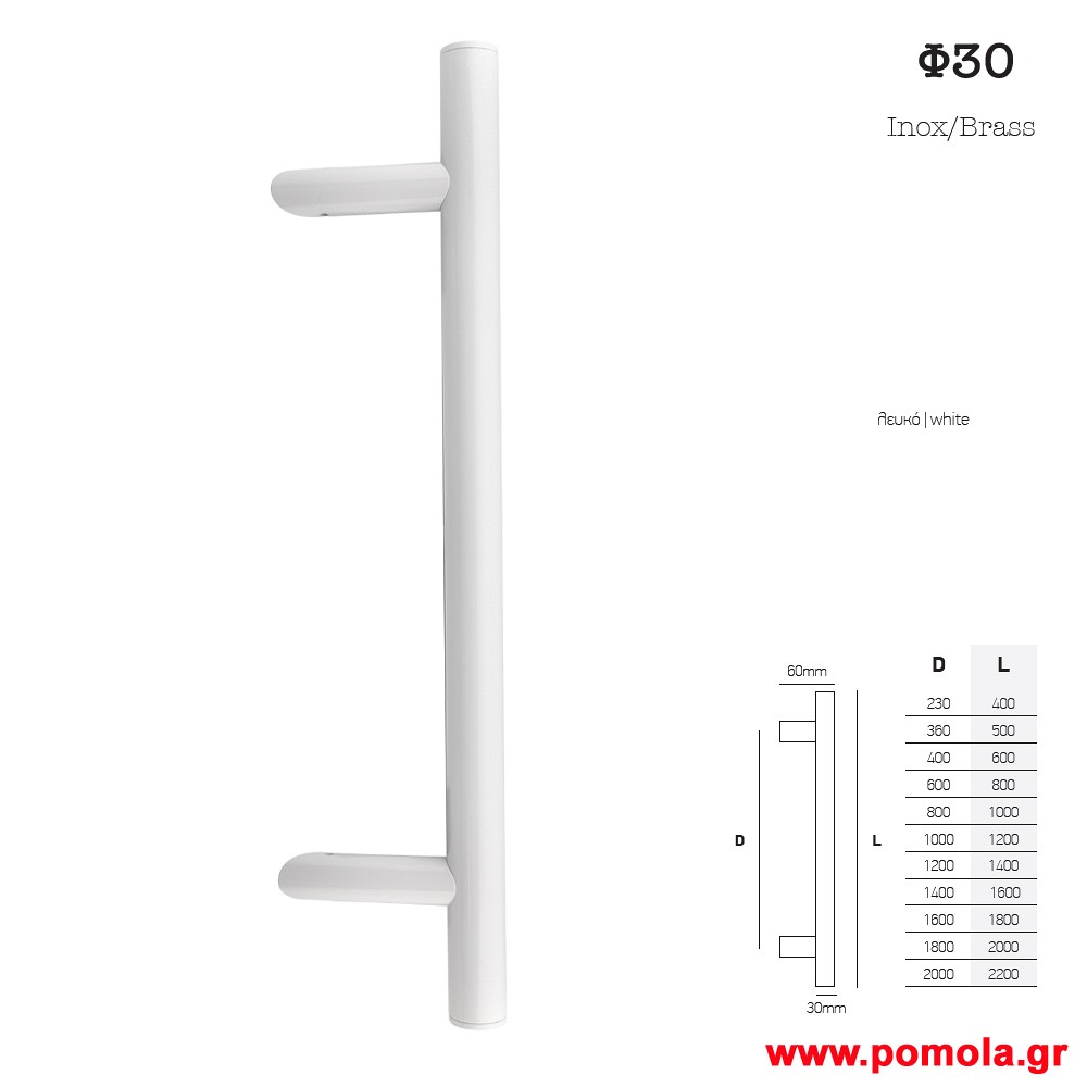 790 Λαβη εξωπορτας λευκη φ 30 msv