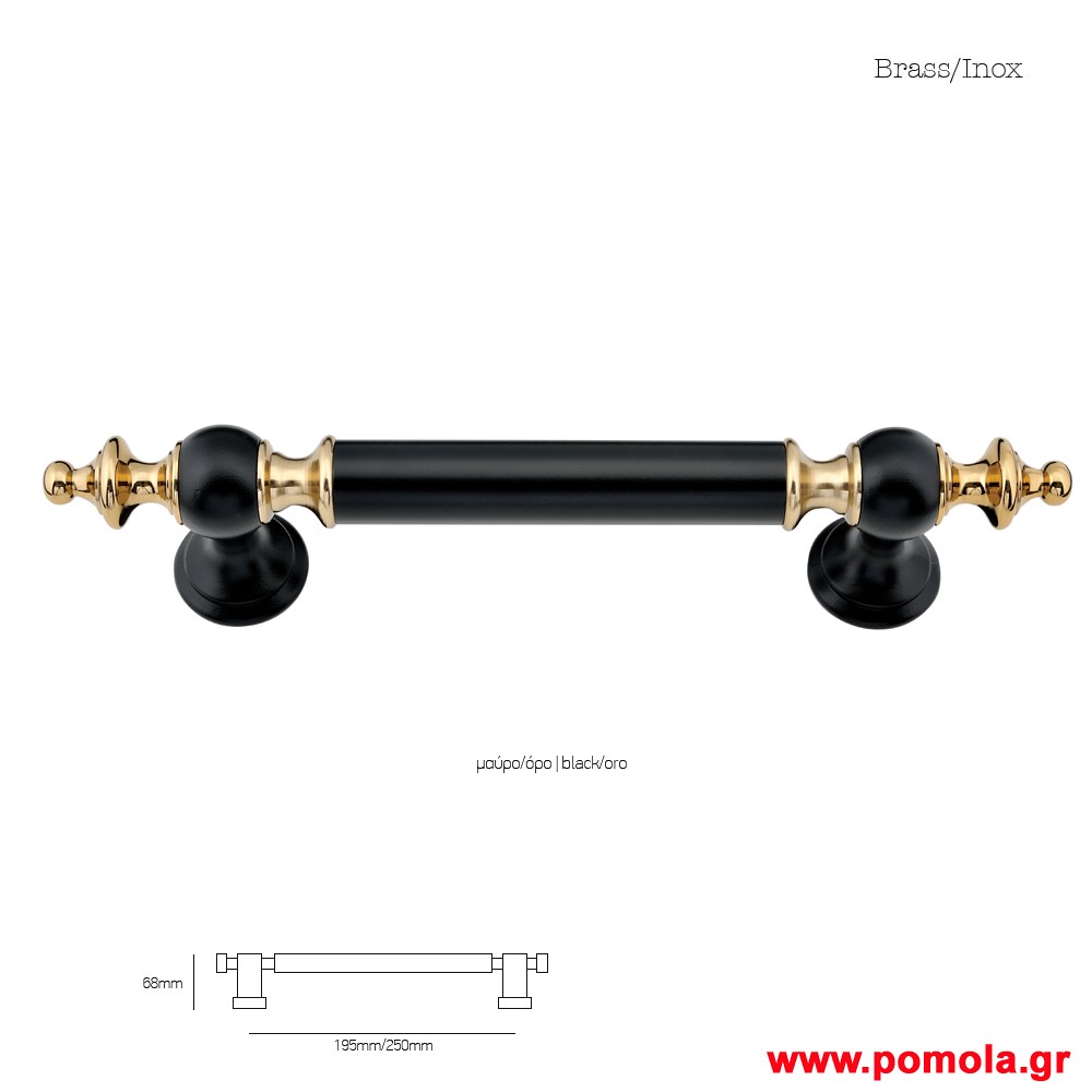 950 Λαβη εξωπορτας ορειχαλκινη μαυρο ματ χρωμιο msv