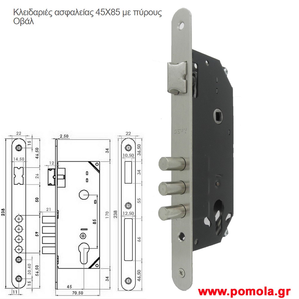 076 Κλειδαρια Ασφαλειας 45χ85 με πυρους οβαλ gv