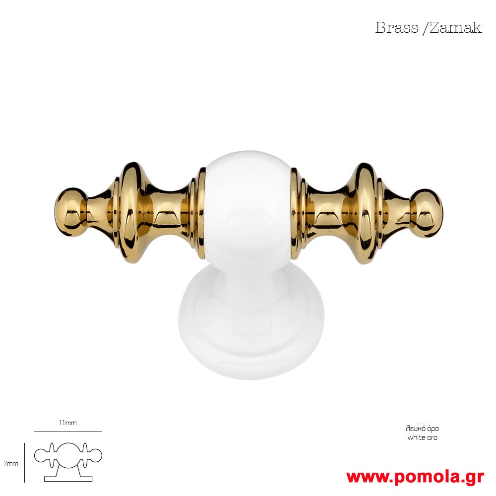509 Πομολο εξωπορτας ορειχαλκινο λευκο ορο msv