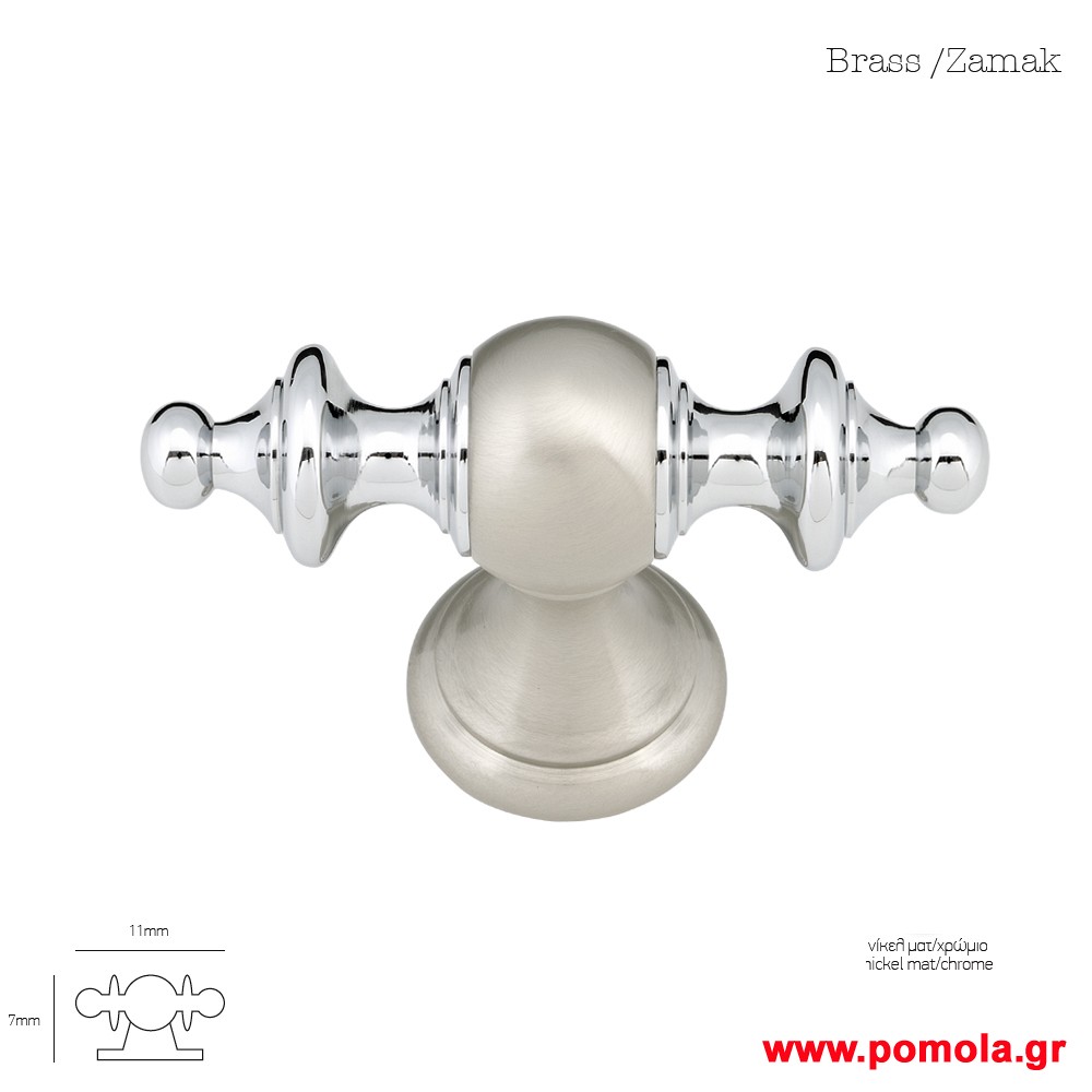 506 Πομολο εξωπορτας ορειχαλκινο νικελ ματ χρωμιο msv