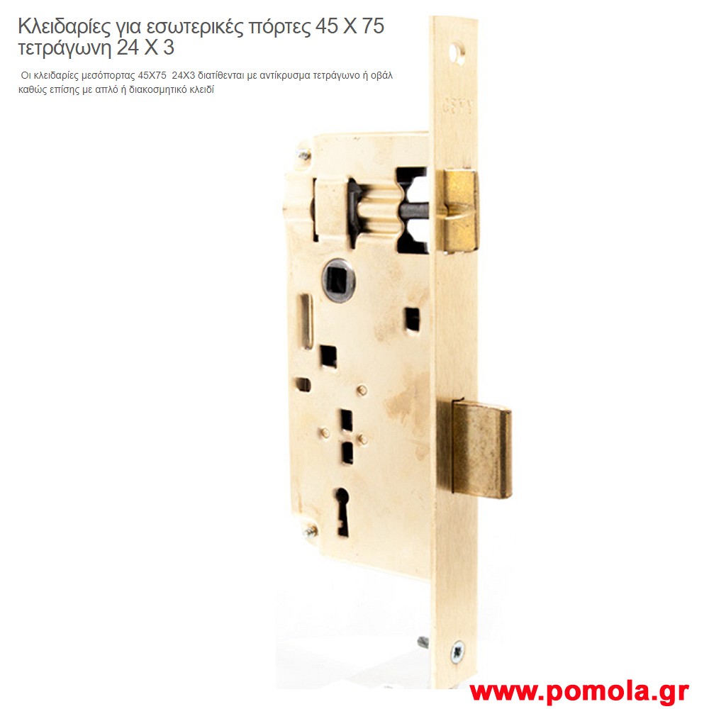 106 Κλειδαρια εσωτερικης πορτας 45χ75 τετραγωνη gv