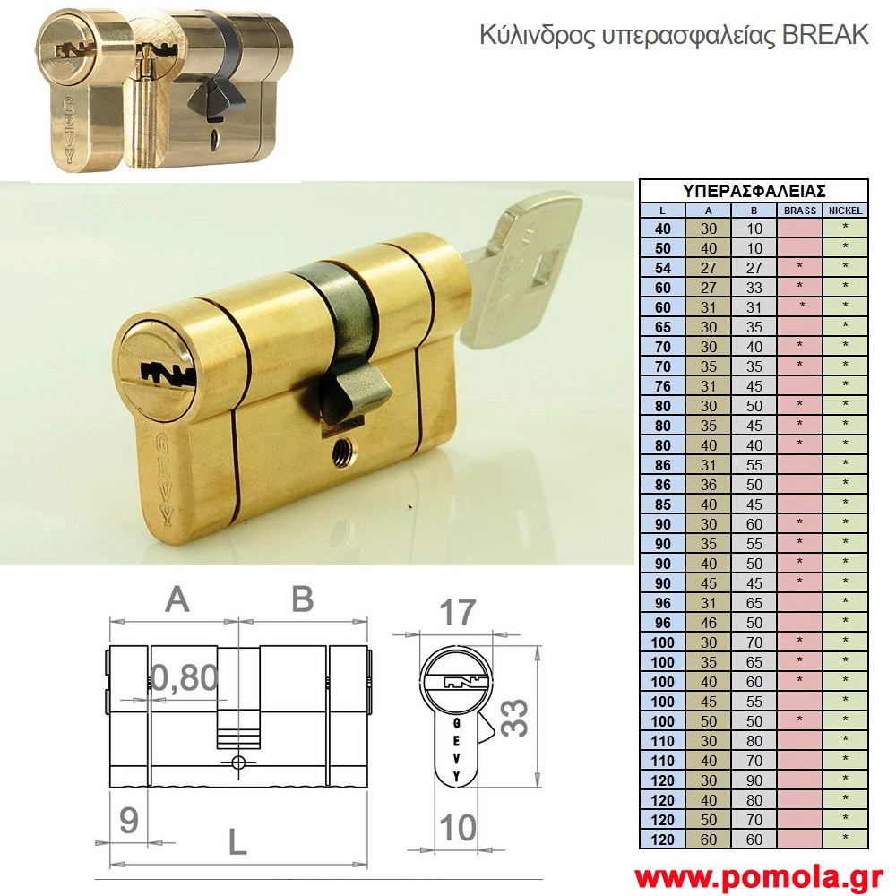 062 Κλειδαρια ασφαλειας για τζαμοπορτεw με κυλινδρο και defender gv
