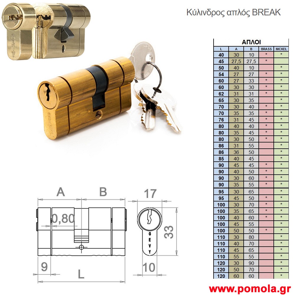 087 Κλειδαρια Ασφαλειας αλουμηνιου 35αρα gv
